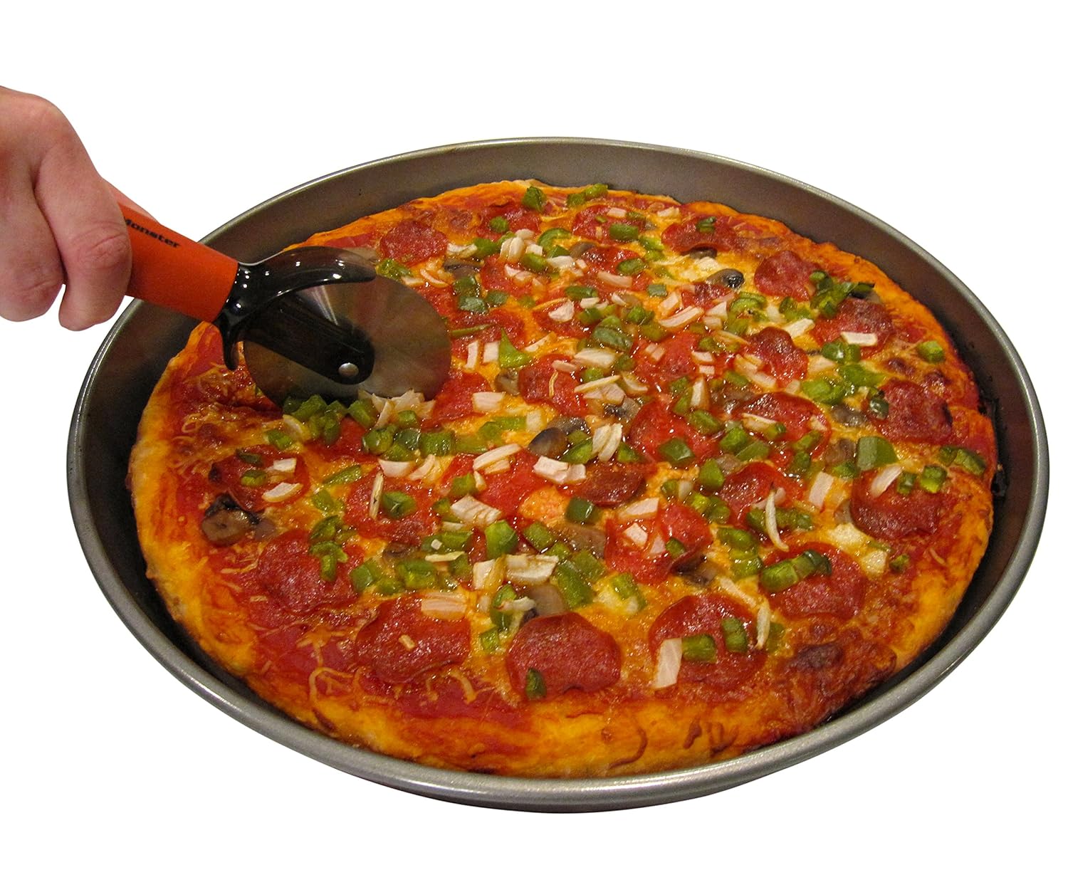 Kitchen Monster Pizza Cutter is a heavy duty pizza cutter. The blade is made of stainless steel and doesn't rust. It's sharp and slices pizza seamlessly. I've also uses this cutter to slice brownies and pies. It made slicing easy. The handle is easy to grip and comfortable to hold. It has an ergonomic grip and feels sturdy and secure. It also has a finger guard for safety. We've really enjoyed this pizza cutter for homemade pizzas, cookies, brownies and more. My kids have especially enjoyed me using this cutter.This cutter is also dishwasher safe and easy to clean. Overall, this is a high quality cutter. I'm very satisfied with this cutter. I received this cutter in return for my unbiased review. You can check out more about Kitchen Monster Pizza Cutter @http://www.greenwaldbrands.com or http://amztk.com/pizzacuttergb. You can also check them out on Facebook @ https://www.facebook.com/greenwaldbrands or Youtube @ www.youtube.com/greenwaldbrandsus.