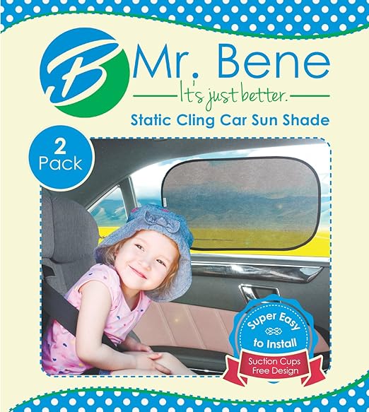 Mr. Bene Car Sun Shade is a suction/ adhesive-free sunshade. There are two sunshades included in a pack. These shades are well made. They have dual layers which give added protection from UV rays. They are very easy to install. These shades don't have suction cups. Simply clean the window and place the cling against the window. Lightly tap the shade against the window until it's firmly pressed. These shades hold well against the windows and they don't fall off. They are just as easy to pull off and store. They are fold-able and come with a nice, compact storage pouch. They do a great job at protecting little eyes from sunlight and they really help to keep the car cooler. Overall, a nice and durable pair of sunshades. You can find out more about Mr. Bene Car Sun Shade @ http://www.amazon.com/Car-Shade-Pack-Mr-Bene/dp/B00VHMZJ2Y. I received these shades in return for my unbiased review.