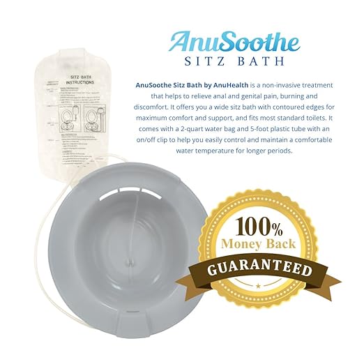 AnuSooothe Sitz Bath is a water therapy for relief from hemorrhoids, anal fissures, yeast infections, post delivery, vaginal infections, constipation, diarrhea, prostatitis, etc. Sitz baths are recommended by doctors because it provides an increased blood flow to the affected area, thereby healing it. This bath is very sturdy. It fits on standard toilets snugly. It's a lightweight and portable bath. This bath is re-usable and is easy to use. The plastic kit fits over the toilet. It fits securely and doesn't slip when you sit on it. It comes with a water bag that's easy to refill. It's not messy because the pipes attach securely in the holes and any extra water flow goes directly into the toilet. It's also easy to clean. Too bad I didn't have this with my pregnancies. My daughter-in-law recently had my granddaughter and she loves it. It gives her much comfort. She has raved about this sitz bath and highly recommends it. This is the perfect gift for any new mom or great to have at home. Highly recommended!! I received this sitz bath in return for my unbiased review. You can find out more about AnuSoothe Sitz Bath @ http://www.amazon.com/dp/B00V6HHJ32.