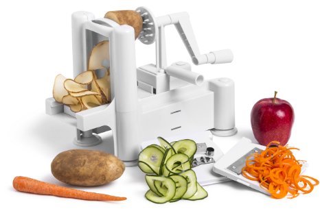 Bella Home International Spiralizer Slicer is a very nice spiralizer. It's a well made slicer, made of a thick and durable plastic. I was very impressed with the size and quality of this slicer. It's perfect for making homemade fries, onion rings, veggie pasta and more. It has strong suction cups on the bottom which prevents it from moving while in use. There are interchangeable blades which are made of stainless steel. They do a fantastic job at slicing fruits and vegetables. It's perfect for slicing veggies when we're having a big family gathering. We have a huge family and I can a large amount of vegetables sliced in no time. It will definitely come in handy for Thanksgiving and Christmas. I have made homemade curly fries which tastes so much better than frozen fries. This slicer allows me to make a huge array of dishes. Also included with this spiralizer is a very nice chopper. It's sturdy and easy to use. It chops garlic and onions nicely. I am very impressed with the quality of this set. It's unbeatable. Highly recommend. I received this spiralizer in return for my unbiased review. You can find out more about Bella Home International Spiralizer Slicer @ http://www.amazon.com/Bella-Home-International-Spiralizer-Chopper/dp/B00XPRQOI2.