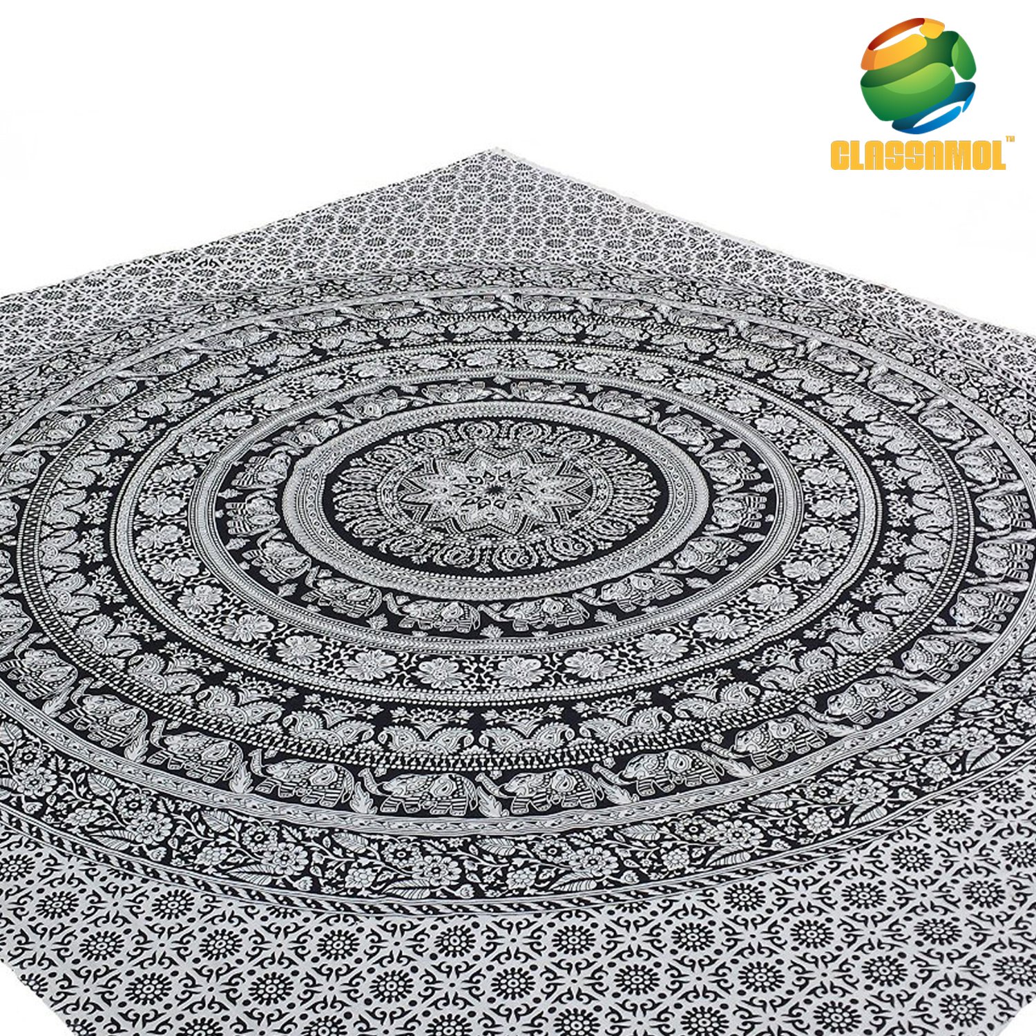 I received Elephant Mandala Wall Hanging Tapestry in return for my unbiased review. Elephant Mandala Wall Hanging Tapestry is a very beautiful tapestry. I love the design and color of this tapestry. It's a black and white printed elephant design. This tapestry measures at 86 x 56 inches and is made of 100% cotton. It has a smooth feel and is well sewn. There's so many different ways this tapestry can be used. From bedspread to bed cover, table cloth, curtain or wall hanging, whatever it's used for will be eye catchy and unique. I love elephants (I'm of course, a Bama fan) and have used this as a wall hanging in my bedroom. It really brings out the decor in my room and I didn't realize how gorgeous it would look until I hung it. I am highly impressed with the design and quality of this tapestry and highly recommend it!! You can find out more about Elephant Mandala Wall Hanging Tapestry @ http://www.amazon.com/Tapestry--CLASSAMOL-TM-Tapestries-Psychedelic/dp/B015JJI8UU/ref=sr_1_70?s=home-garden&ie=UTF8&qid=1448010849&sr=1-70&keywords=tapestry.