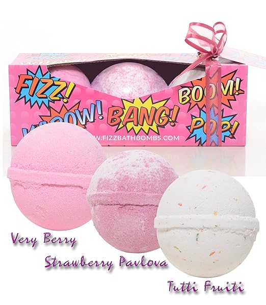 FIzz Bath Bombs Giant Lush Bath Bomb Gift Set would make a great Christmas gift. This is a set of 3 very large bath bombs. They have great scents which you can smell even before you open the package. I've never tried these bath bombs but absolutely love them now. Simply drop a bath bomb in the tub and watch it fizz. It lasts around 5 minutes and turns the water different colors. It's nice and relaxing. The scent is nice and makes for a really nice bath. Each bomb contains shea butter and Vitamin A which helps to leave skin soft and silky. The bombs can be broken up to be used as smaller bombs. I made a bath for my daughter and she loved the bath bomb!! She loved how it turned colors and she absolutely loved the fizz. It really does leave the skin softer and smoother. Love this set and highly recommend!! I received this set in return for my unbiased review. You can find out more about FIzz Bath Bombs Giant Lush Bath Bomb Gift Set @ http://www.amazon.com/Bath-Bombs-Presents-Very-Berry/dp/B010BC0FEW.
